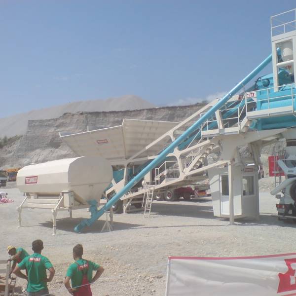 The concrete batching plant “VOYAGER 90-M” is a trailer vehicle, which has 90m3/h production capacity and can be set up in full operation within a few hours.